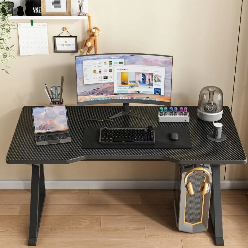 Duża Powierzchnia Carbon: Blat o wymiarach 120 x 60 cm wysokość 74cm zapewnia mnóstwo miejsca na duży monitor, klawiaturę, podkładkę gamingową i laptopa. Eleganckie czarne wykończenie z wzorem Carbon Fiber nadaje mu agresywny, profesjonalny wygląd.