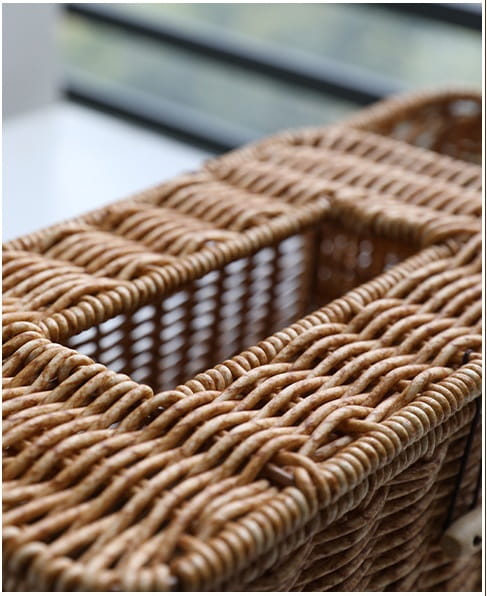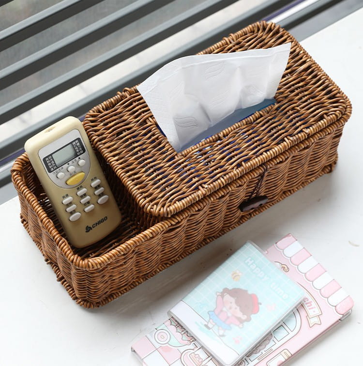 Utrzymuj porządek i dodaj naturalnego uroku swojemu wnętrzu dzięki naszemu wszechstronnemu organizerowi plecionemu. Ten elegancki kosz łączy funkcjonalność dozownika na chusteczki z praktycznymi przegródkami na drobne przedmioty, idealny na biurko, stolik kawowy czy komodę.