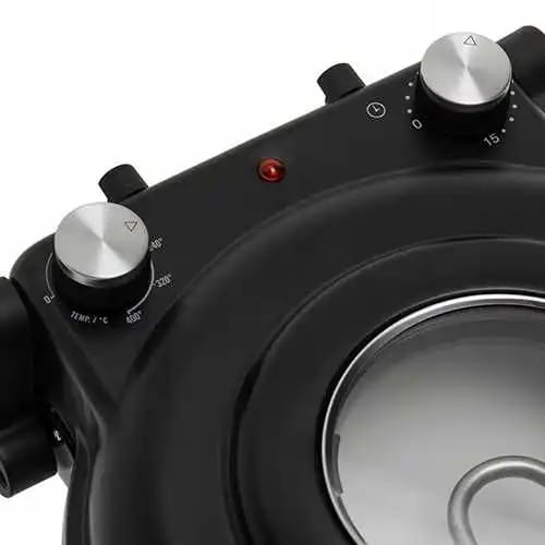 Pełna Kontrola: Wbudowany timer (do 15 min) oraz okienko w obudowie pozwalają monitorować stopień wypieczenia bez utraty temperatury.