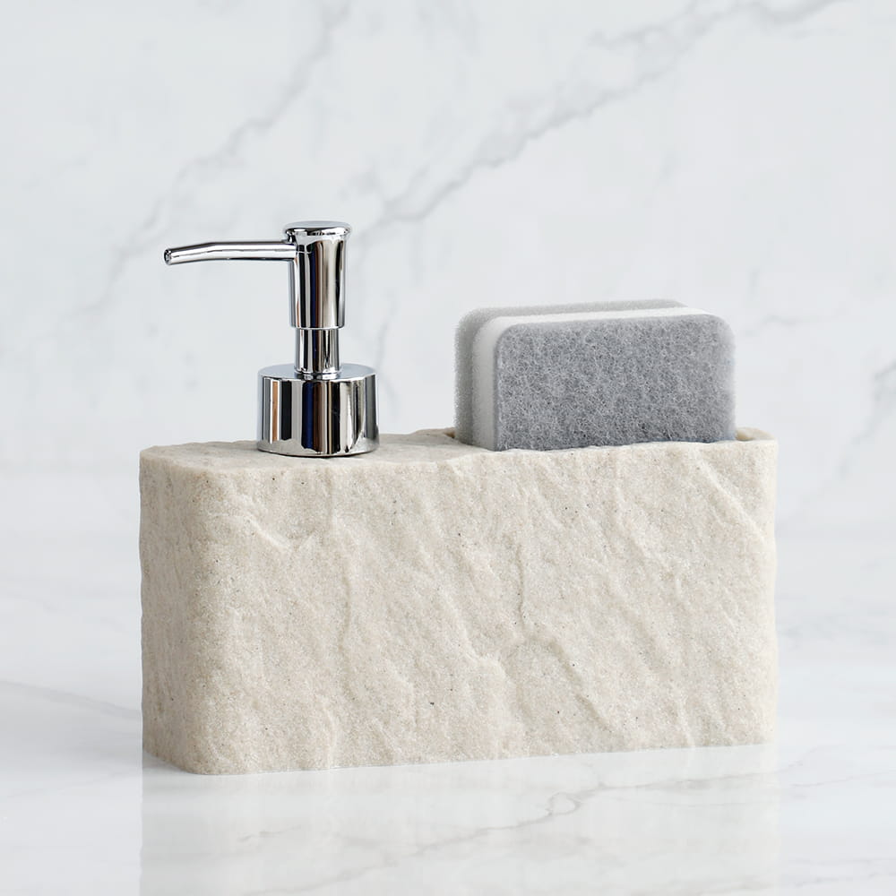 Dozownik kuchenny na płyn z pojemnikiem na gąbkę beżowy