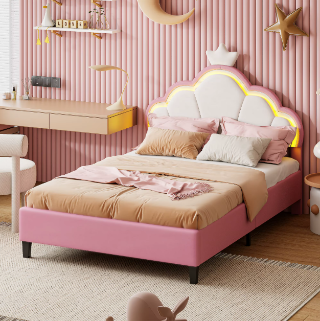 Podaruj swojemu dziecku przestrzeń do snu godną prawdziwej księżniczki. Model w rozmiarze 140x200 cm to idealne rozwiązanie dla starszych dzieci i nastolatek, które potrzebują więcej miejsca i wygody. Wyjątkowy design z zagłówkiem w kształcie korony i wbudowanym oświetleniem LED sprawi, że pokój stanie się magicznym miejscem.