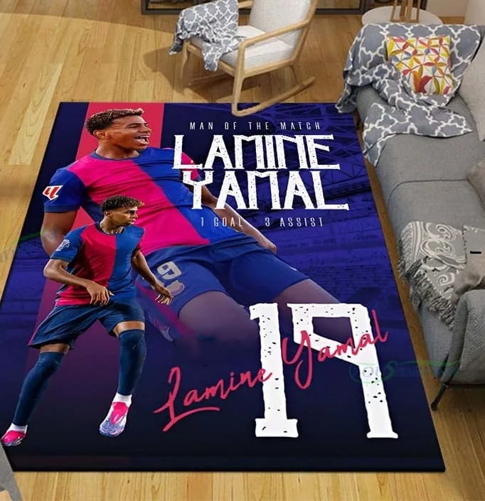 Ten dynamiczny dywan z motywem Lamine Yamal to idealny dodatek do pokoju każdego fana piłki nożnej. Wykonany z wysokiej jakości materiałów, jest miękki i przyjemny w dotyku, a jednocześnie trwały i odporny na ścieranie, co jest kluczowe w pokoju dziecięcym. Spód dywanu jest antypoślizgowy, co zapewnia bezpieczeństwo podczas zabawy. Żywe kolory i szczegółowy nadruk sprawiają, że dywan stanie się centralnym punktem każdego wnętrza z wizerunkiem idola piłki.
