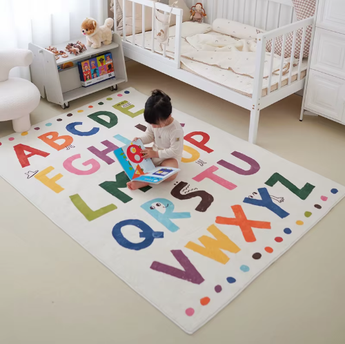 Miękki i trwały materiał: Wykonany w 100% z poliestru (polyester fiber), dywan jest niezwykle miękki i przyjemny w dotyku. Jest wytrzymały i odporny na codzienne użytkowanie, co jest kluczowe w przestrzeni dla dzieci.