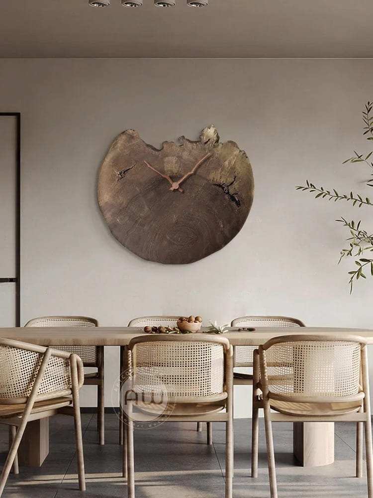 Materiał Premium: Mimo naturalnego wyglądu, zegar jest wykonany z trwałej płyty gęstości z precyzyjnym konturowym rzeźbieniem, co zapewnia trwałość i lekkość.