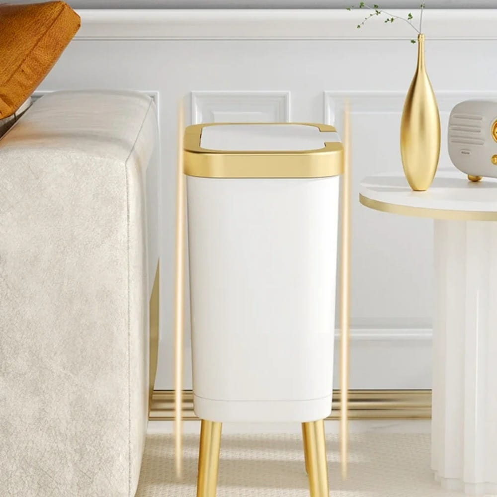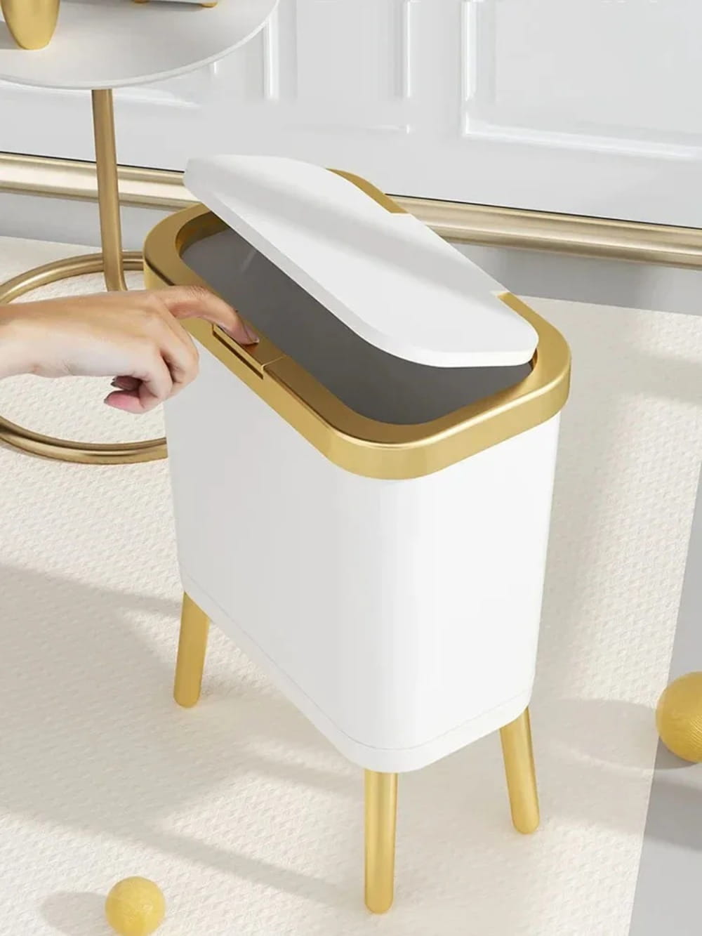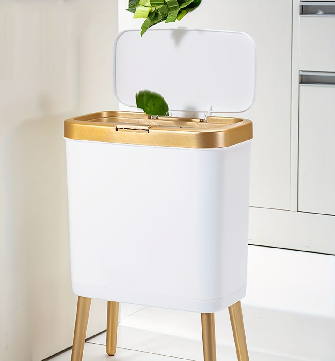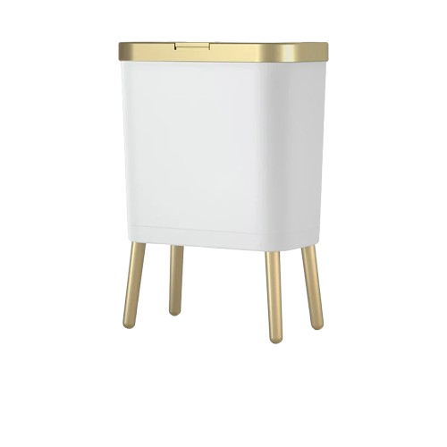 Elegancki kosz na śmieci z nóżkami i pokrywą - biało-złoty