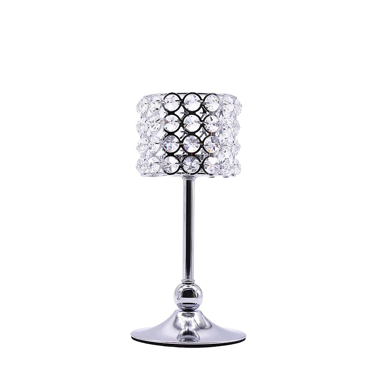 Ten elegancki świecznik kryształowy to idealny dodatek, który wprowadzi blask i wyrafinowany styl do każdego wnętrza. Wykonany z wysokiej jakości metalu w lśniącym, srebrnym kolorze, stanowi solidną i trwałą podstawę. Górna część świecznika, przypominająca cylinder, jest misternie zdobiona szeregami błyszczących kryształów, które pięknie rozpraszają światło, tworząc magiczną atmosferę. Smukła nóżka oraz stabilna, okrągła podstawa nadają mu klasycznej elegancji i zapewniają bezpieczeństwo użytkowania.