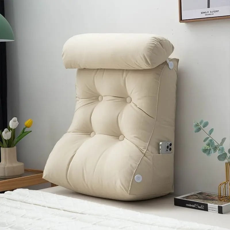Ergonomiczna Poduszka Lędźwiowa do Czytania w Łóżku – Regulowany Zagłówek, Podparcie Pleców i Szyi, Kieszeń na Telefon