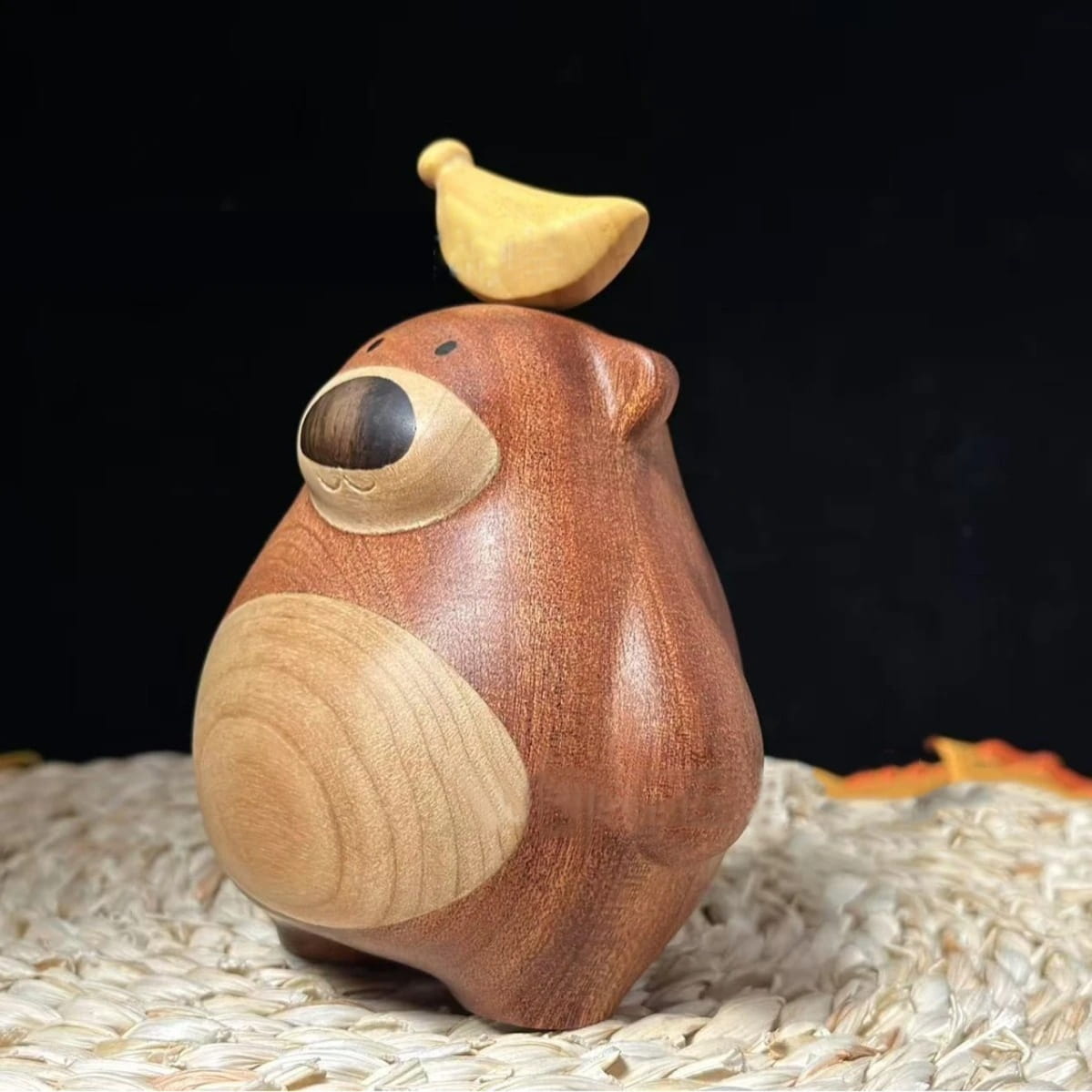 Figurka ozdobna do wystroju wnętrz drewniany misio z brzuszkiem