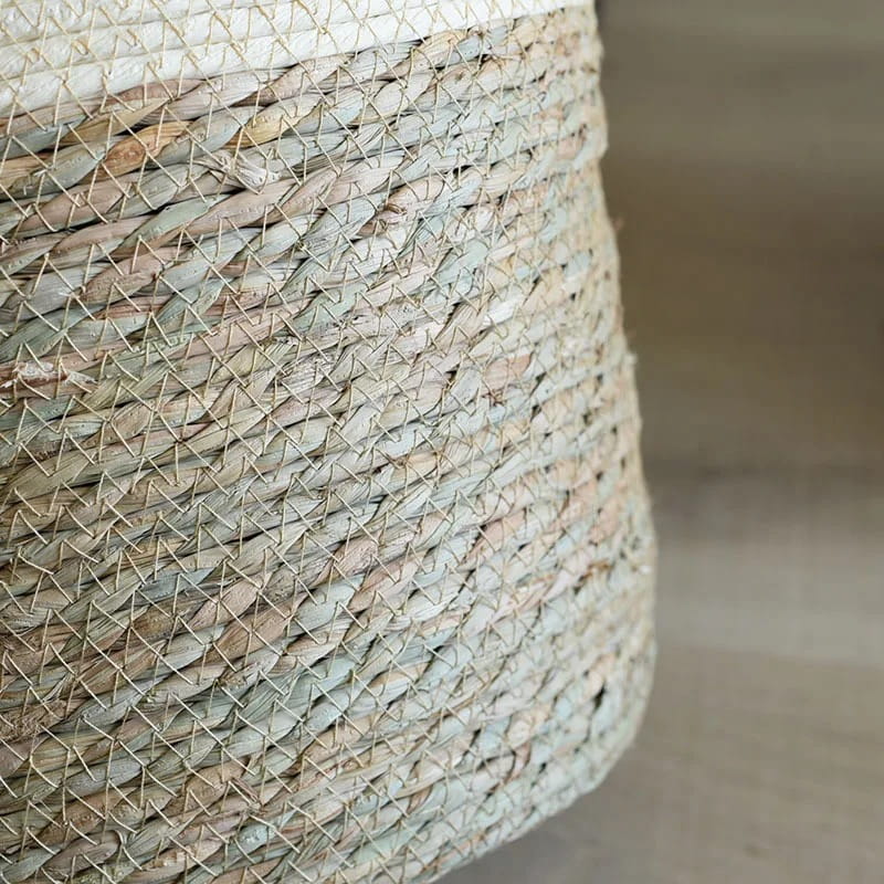 Wprowadź do swojego domu naturalny styl i porządek z naszym ręcznie plecionym koszem. Wykonany z trwałej trawy morskiej i nici Rami, z dwukolorowym designem, ten kosz jest idealny do przechowywania różnorodnych przedmiotów, a także jako stylowa osłonka na doniczkę czy pojemnik na zabawki. Dodaj ciepła i tekstury swojemu wnętrzu!