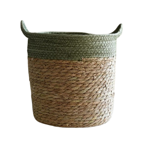 Kosz Pleciony Z Trawy Morskiej Z Uchwytami Do Przechowywania Zielony