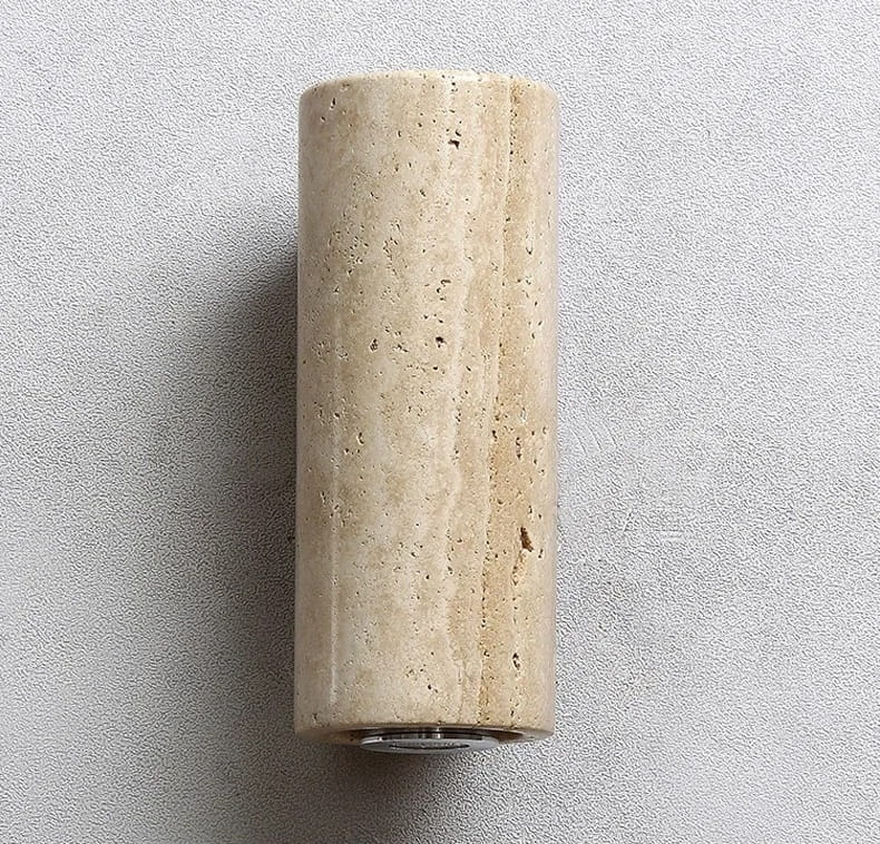 Ta wyjątkowa lampa ścienna łączy naturalne materiały i minimalistyczny design, idealnie wpasowując się w styl skandynawski, nowoczesny oraz boho. Wykonana z naturalnego drewna i trawertytu z naturalnymi porami i szczelinami, wnosi ciepło i surowy, industrialny akcent.