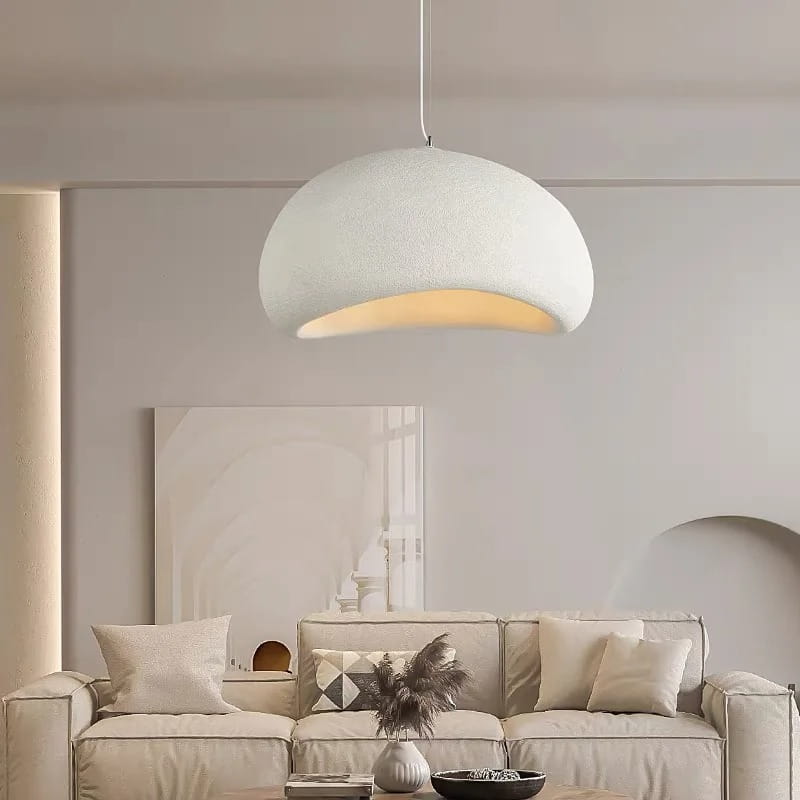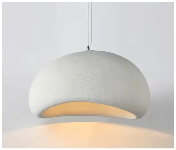 Ta lampa wisząca łączy w sobie surową formę z naturalnym pięknem, które jest charakterystyczne dla estetyki wabi-sabi. Jej nieregularny, organiczny kształt przypomina kamień wygładzony przez naturę, a matowa, szorstka faktura podkreśla niedoskonałość, która w tym stylu staje się zaletą.