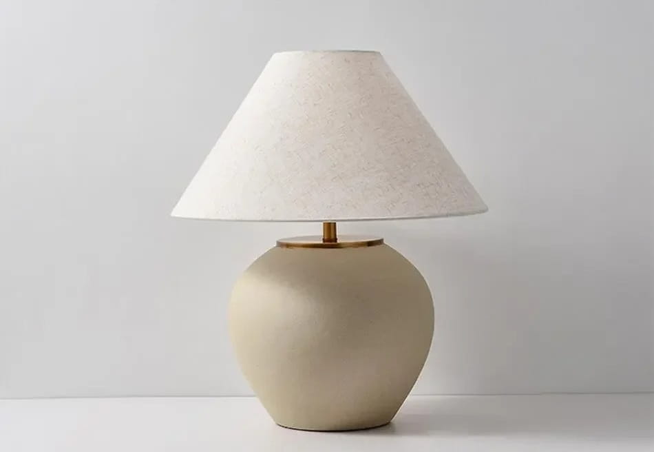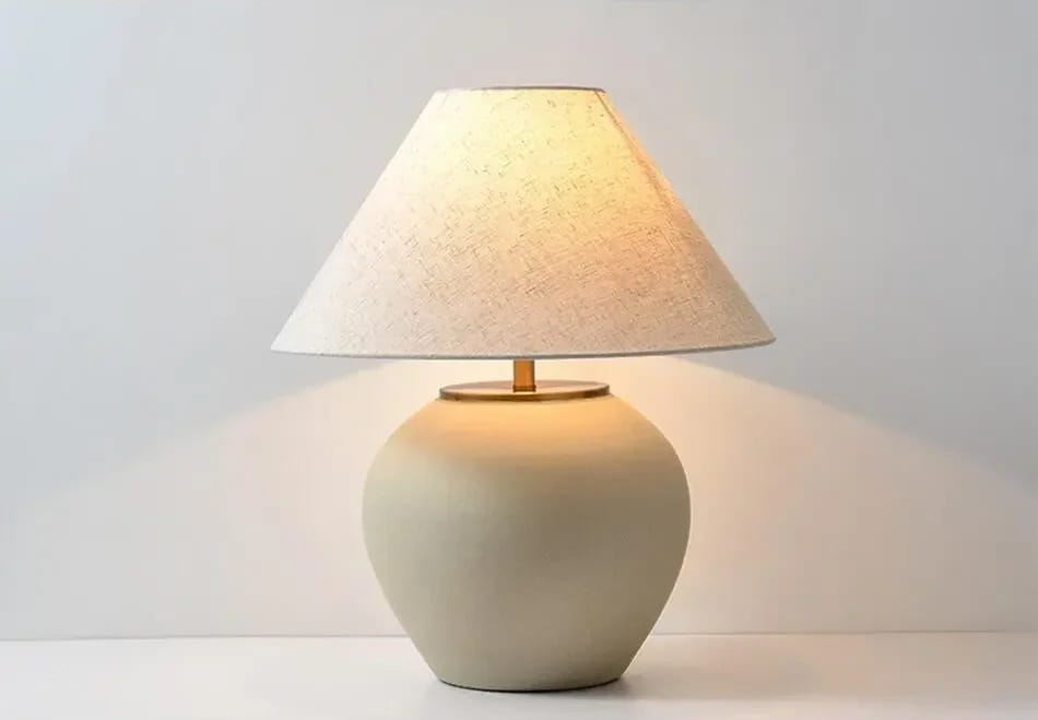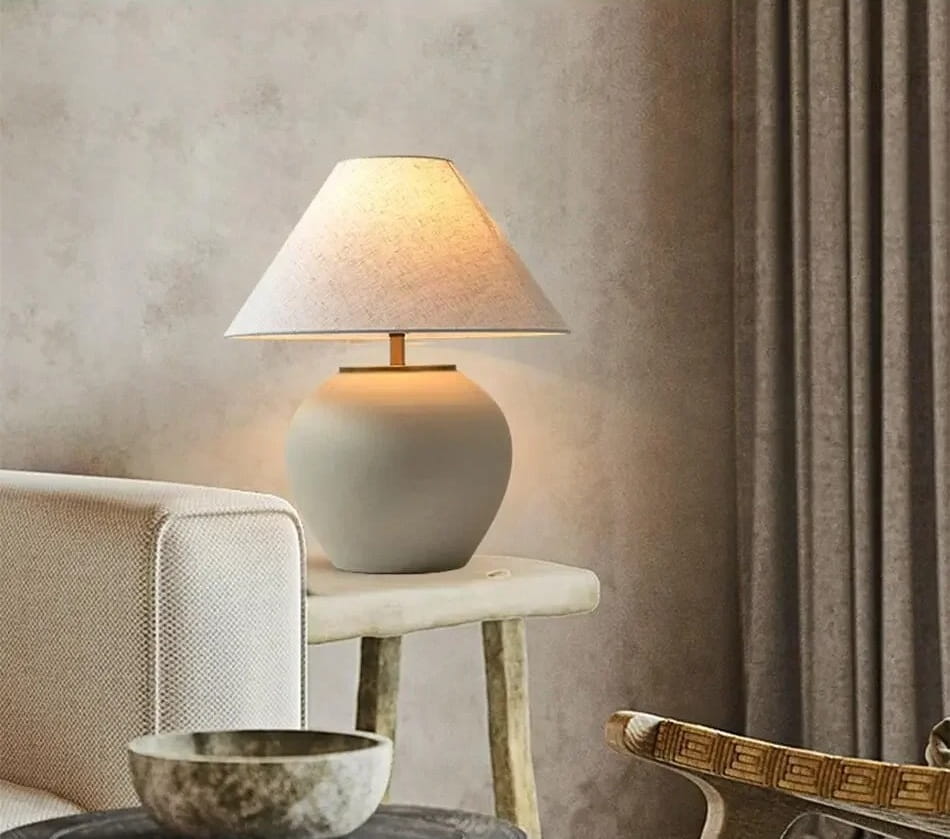 Lampka Stołowa Ceramiczna z Lnianym Kloszem