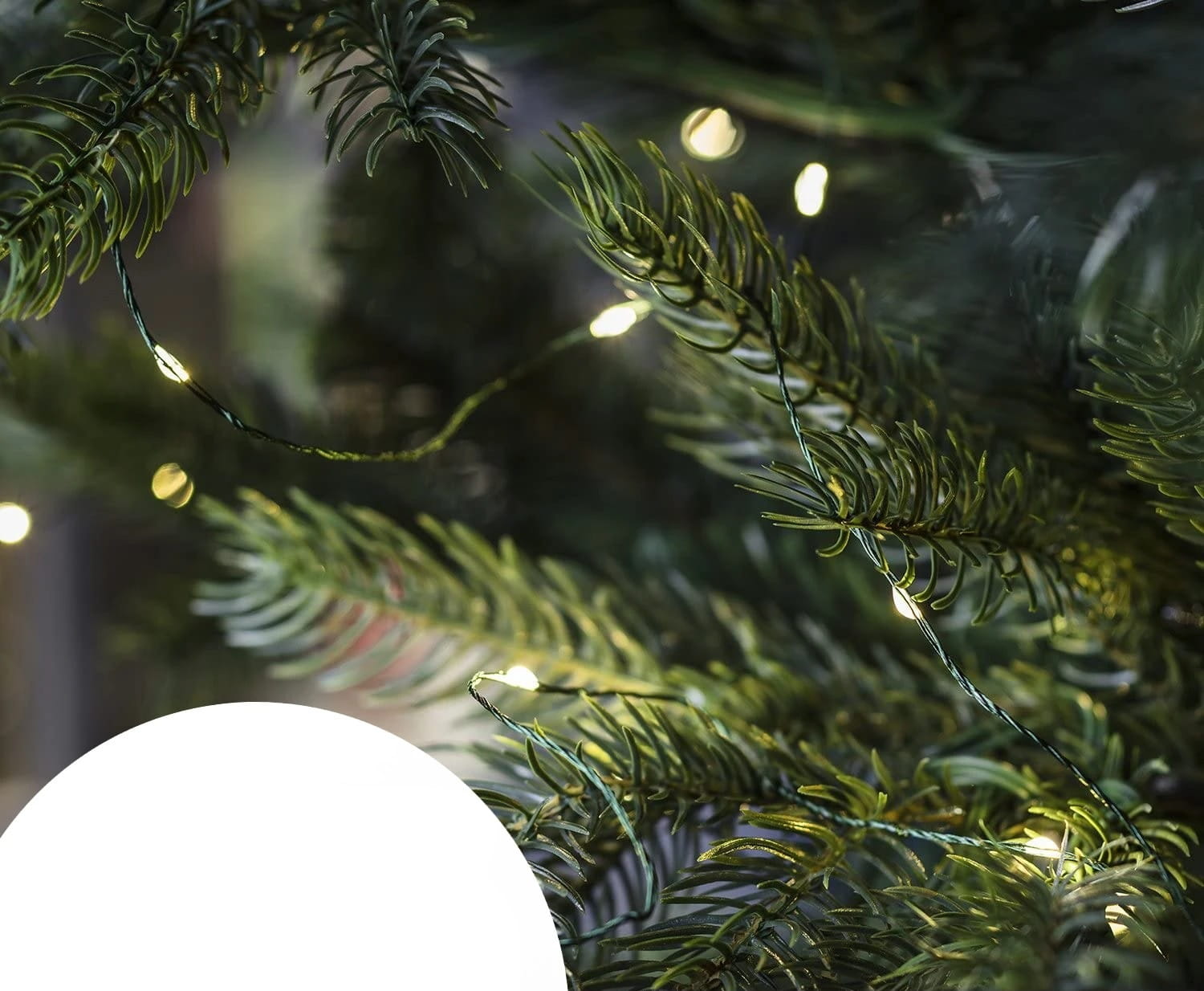 Dzięki wielu wariantom długości (50M, 100M, 120M, 160M) możesz dopasować girlandę świetlną do swoich potrzeb – od małej choinki po duże dekoracje zewnętrzne. Zielony przewód doskonale wtapia się w igliwie, a ciepłe białe światło LED nadaje wnętrzu przytulny klimat.
