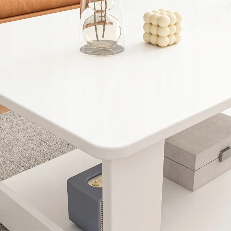 Ława Stolik Kawowy Biały 100x50 cm z Półką - Nowoczesny Minimalistyczny Salon