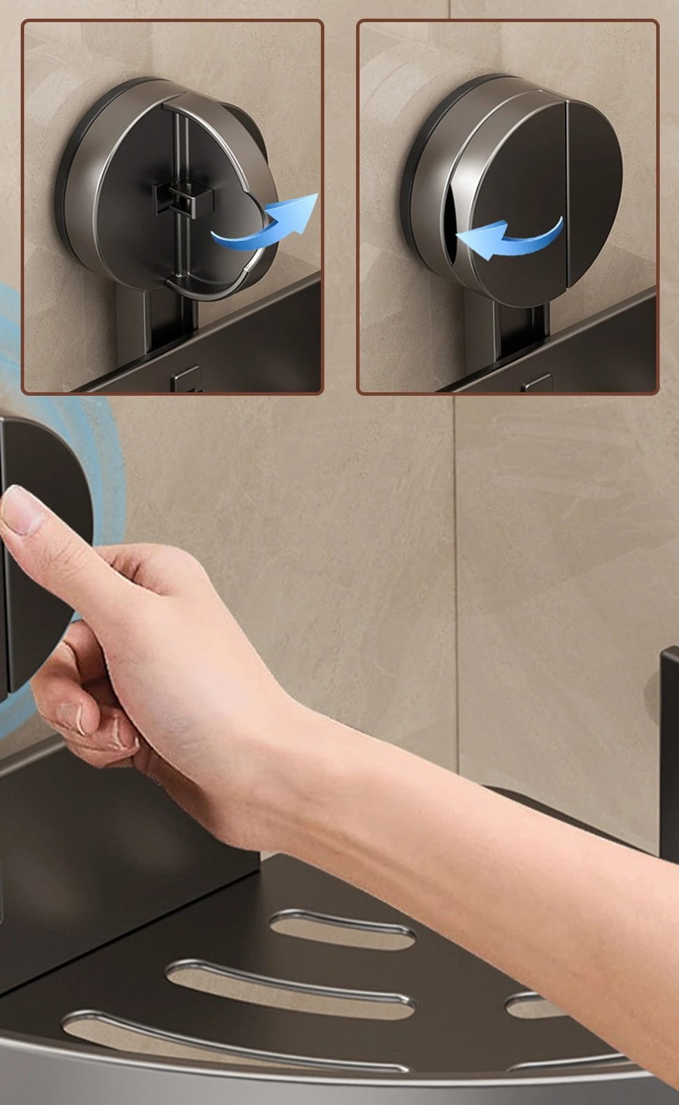 Łatwy montaż bez wiercenia: Wyposażona w dwie mocne przyssawki, półka pewnie trzyma się gładkich powierzchni (jak płytki czy szkło), zapewniając stabilność bez uszkadzania ścian. Możliwość demontażu i przeniesienia w dowolne miejsce.