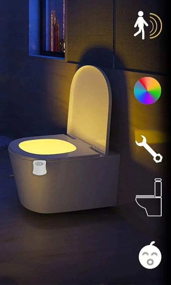 Nocna Lampka LED na ruch do WC - 8 Kolorów - Inteligentne Oświetlenie Toalety