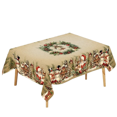 Obrus Świąteczny Vintage – Dekoracja na Stół z Mikołajem i Bałwankiem
