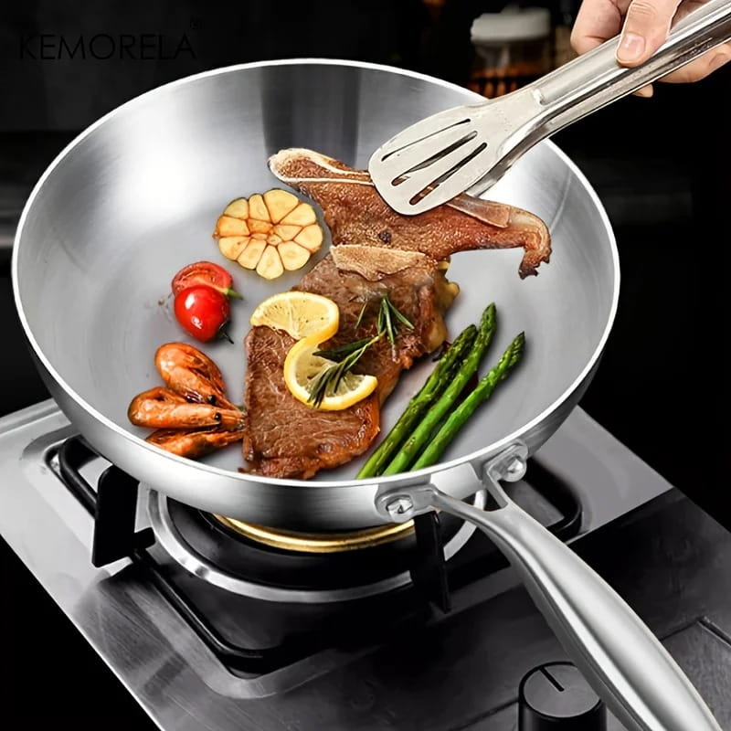 Patelnia ze stali nierdzewnej KEMORELA – Trójwarstwowa, Bez powłoki, Indukcja/Gaz