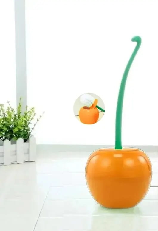 Inspirowana soczystą czereśnią, nasza szczotka toaletowa składa się z głębokiego, lśniącego pojemnika w kształcie owocu oraz długiej, smukłej rączki w kolorze zielonym, przypominającej szypułkę.