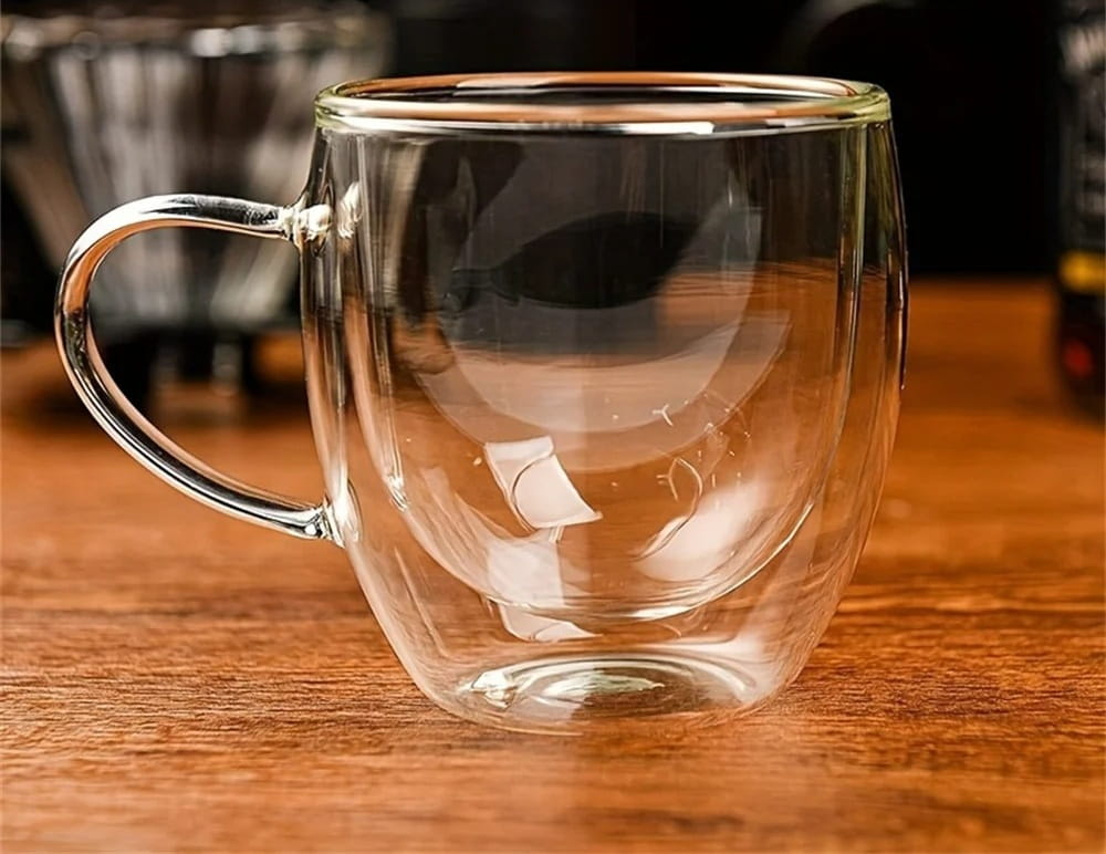 Ta elegancka szklanka termiczna o pojemności 250 ml z uchem to idealny wybór dla każdego, kto ceni sobie komfort i styl. Wykonana z wysokiej jakości szkła z podwójnymi ściankami, zapewnia doskonałą izolację, dzięki czemu Twój ulubiony napój kawa, herbata, gorąca czekolada dłużej zachowuje odpowiednią temperaturę, a jednocześnie zewnętrzna powierzchnia szklanki pozostaje chłodna w dotyku. Krystalicznie czyste szkło pięknie eksponuje zawartość, dodając estetyki każdej chwili. Szklanka ma wymiary 8,5 cm wysokości i 8,5 cm szerokości, z podstawą o średnicy 5 cm, co zapewnia stabilność i wygodę użytkowania.