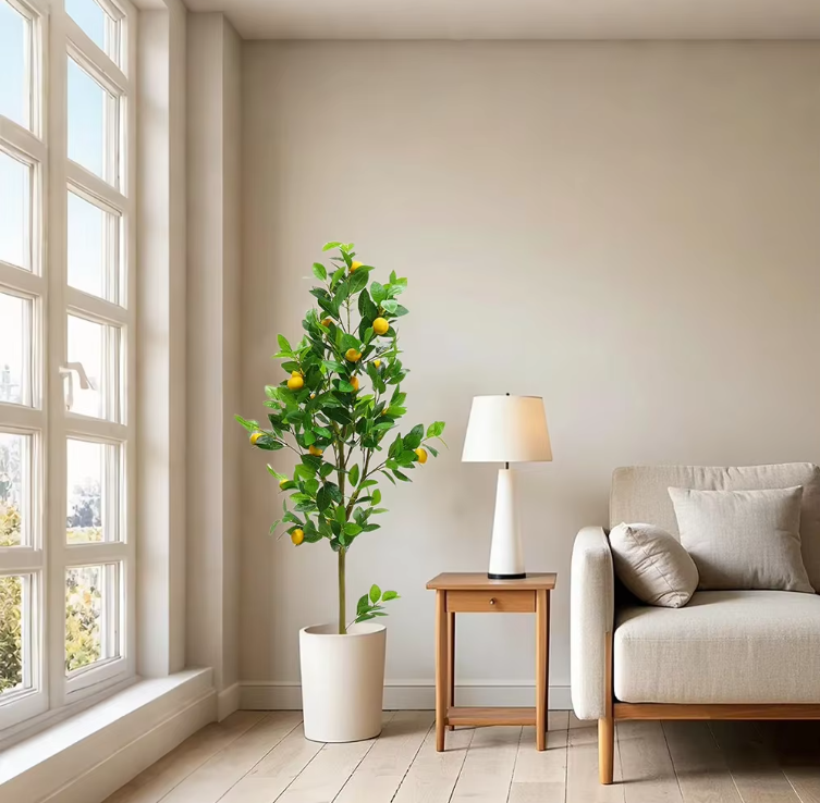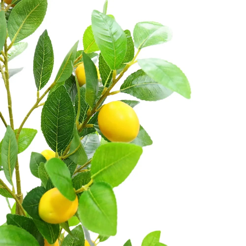 Nasze sztuczne drzewko cytrynowe o wysokości 150 cm to idealny sposób na wprowadzenie świeżości, koloru i śródziemnomorskiej energii do każdego wnętrza. Zapomnij o wymagającej pielęgnacji cytrusów – to drzewko zachwyca soczystą zielenią i jaskrawożółtymi owocami przez cały rok, bez podlewania i nawożenia.