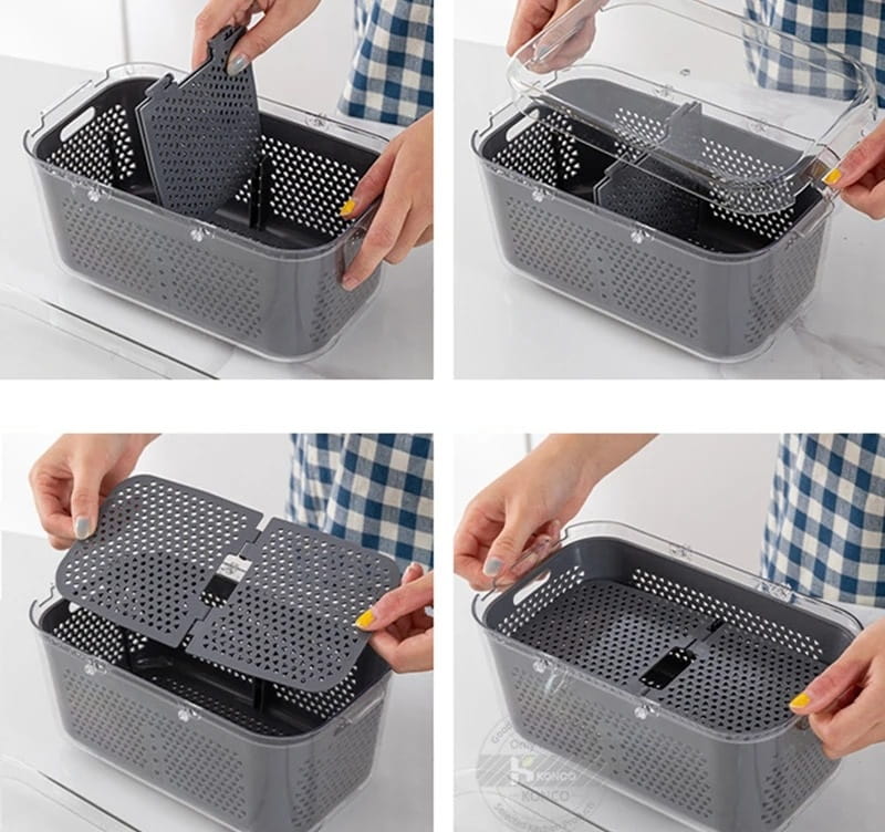Wygoda i czystość: Krajalnica wyposażona jest w duży, przezroczysty pojemnik, do którego wpadają pokrojone warzywa. Dzięki temu utrzymasz porządek na blacie i unikniesz bałaganu.