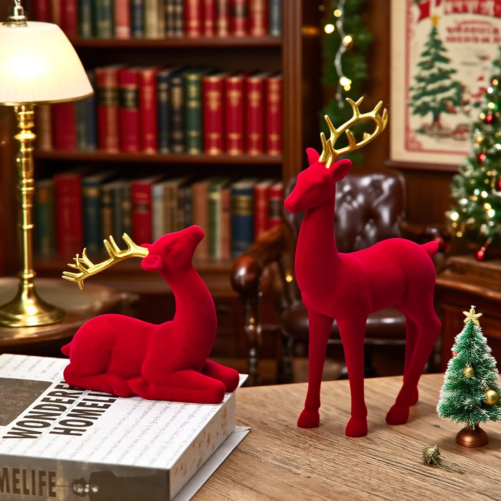 Zestaw 2 Flokowanych Figur Reniferów — Świąteczne Dekoracje Stołowe