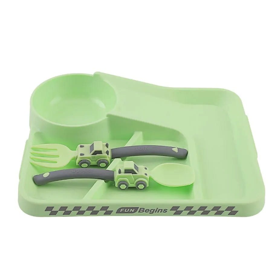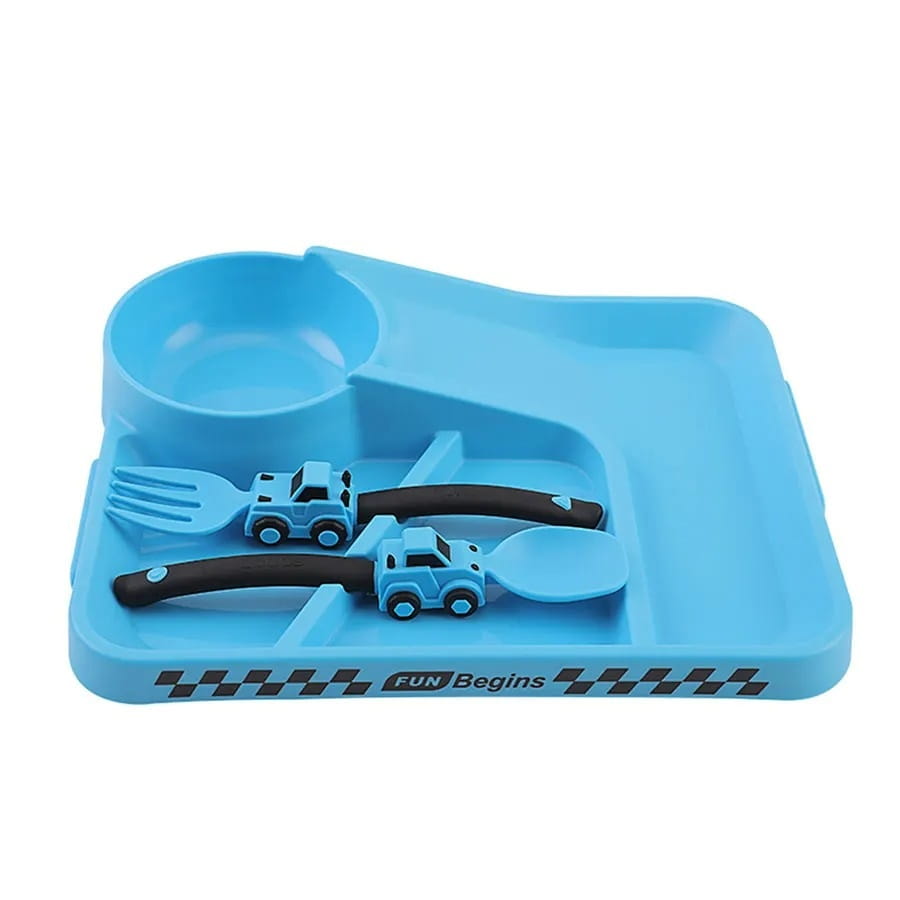 Zestaw Obiadowy dla Dzieci Auta Koparka Talerz Sztućce