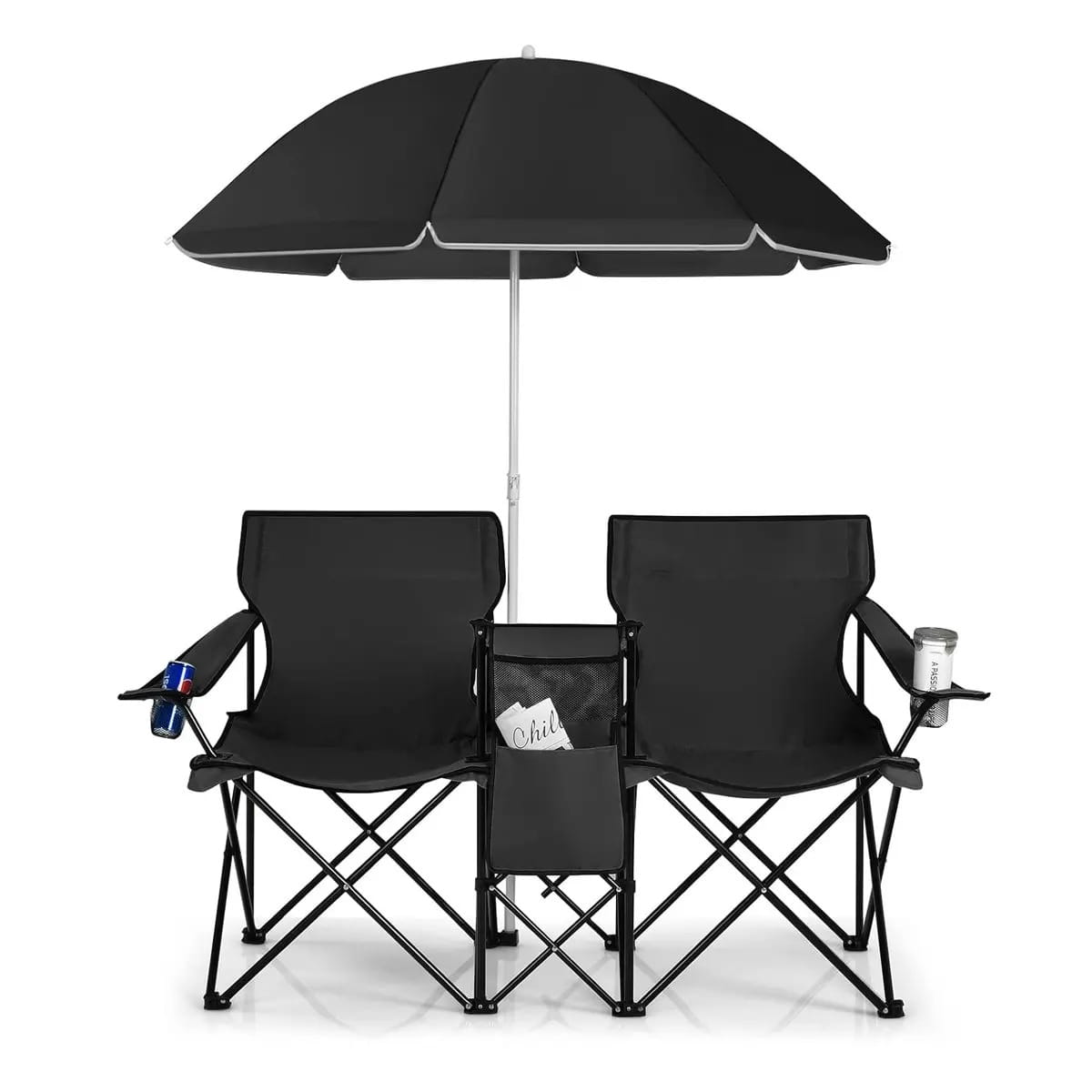 Relaks we dwoje w pełnym cieniu – Podwójne krzesło kempingowe z parasolem