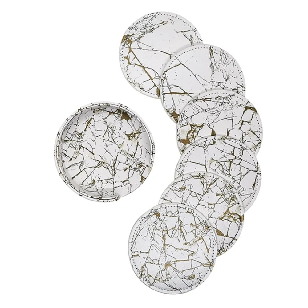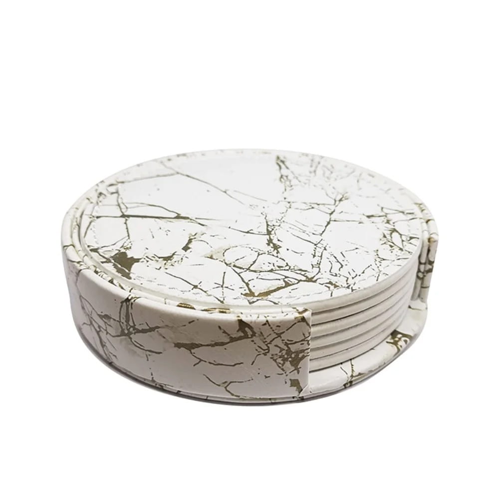 Zestaw Podkładek pod Kubki Białe Skórzane 6 sztuk Wzór Marmurowy