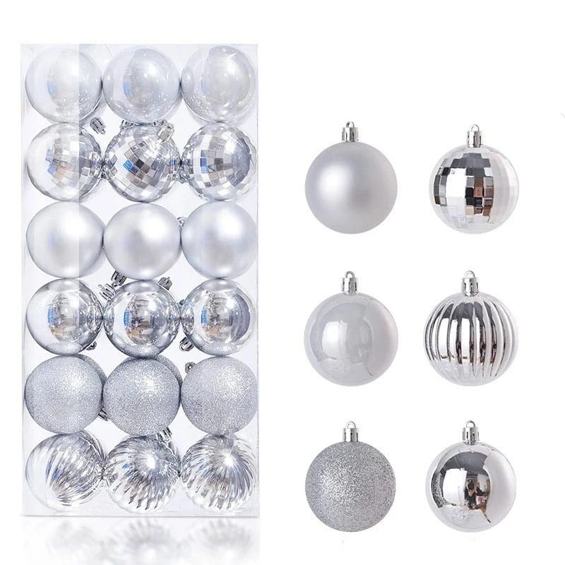 Zestaw bombek choinkowych srebrny 36 szt. Ozdoby świąteczne plastikowe