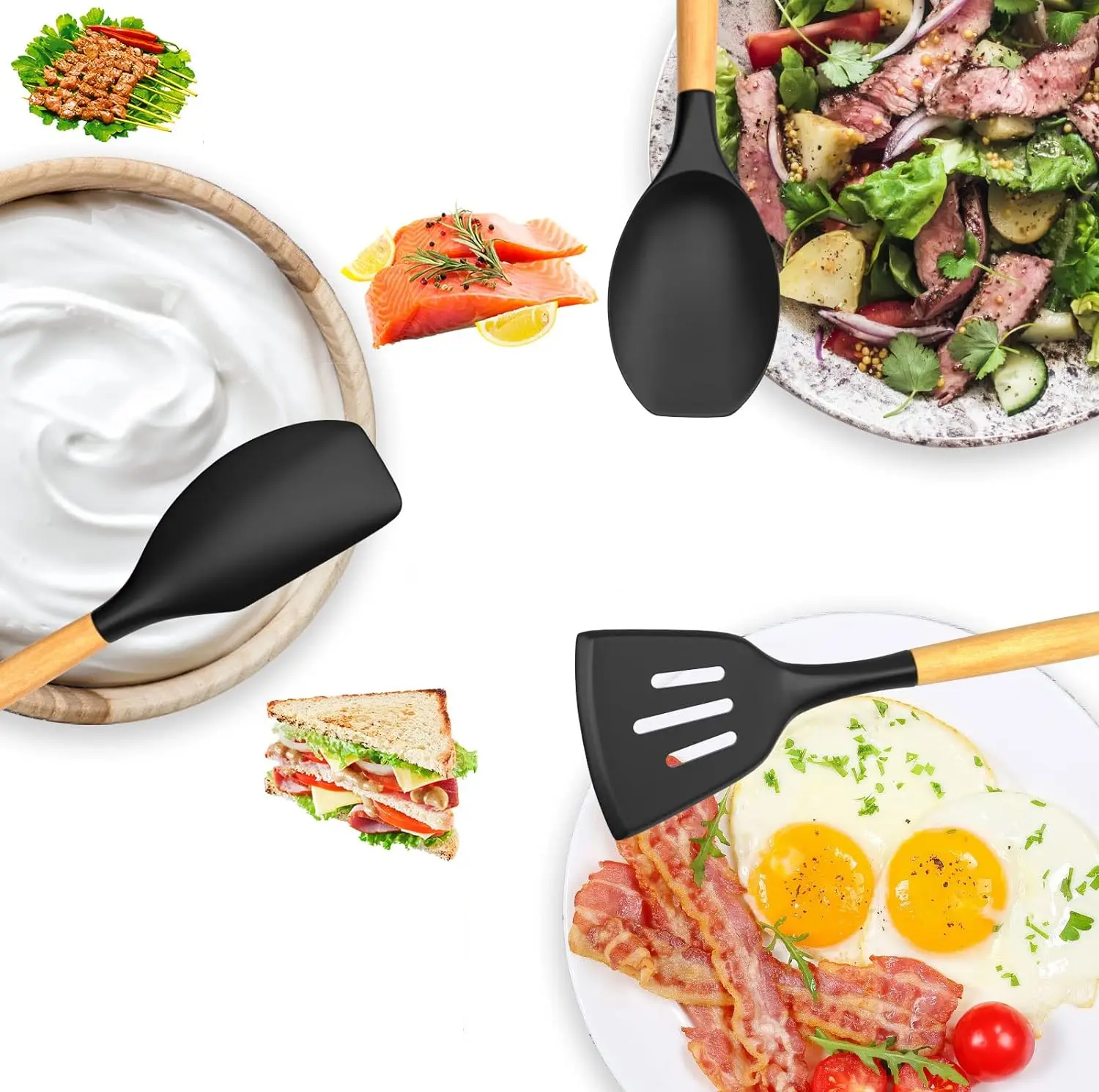 Stylowy design: Połączenie matowej czerni i naturalnego drewna sprawia, że zestaw będzie pasował do każdej nowoczesnej kuchni, stanowiąc zarówno praktyczne narzędzie, jak i estetyczny dodatek.