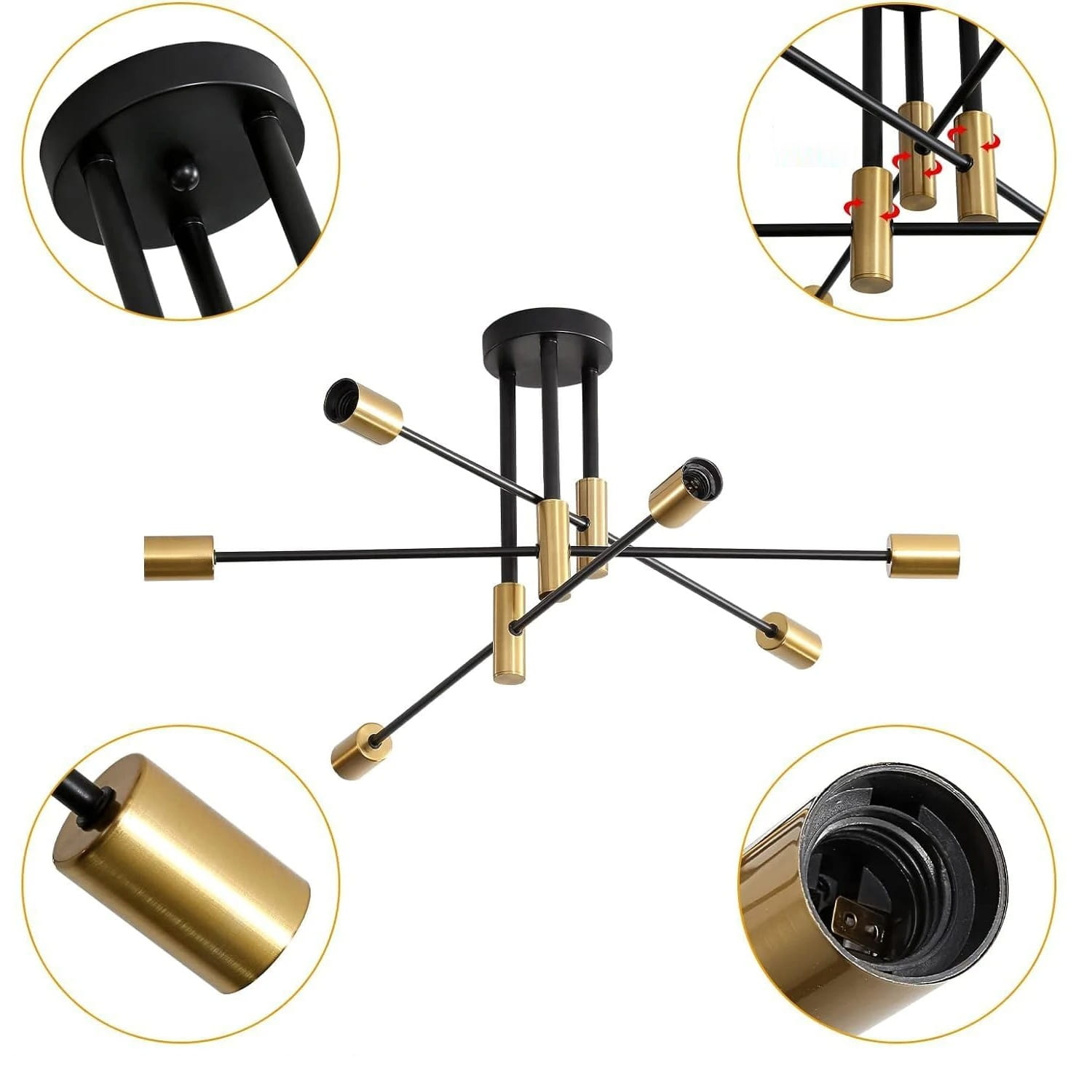 Konstrukcja: Lampa posiada 6 ramion rozmieszczonych promieniście, co zapewnia optymalne i równomierne oświetlenie przestrzeni.